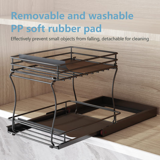 2 Pack, Medium Metal Pull Out Cabinet Organizer, Kitchen Bathroom Organizer And Storage Rack With Sliding Drawers, Storage Rack, Storage And Organization For Home, Laundry Room, RV, Pantry, Spices