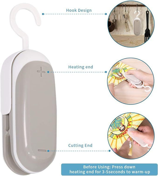 2PACK Mini Bag Sealer, Portable Heat Vacuum Sealers Plastic Sealer, 2 In 1 Heat Seal And Cutter Mini Food Sealer For Plastic Bags Food Storag