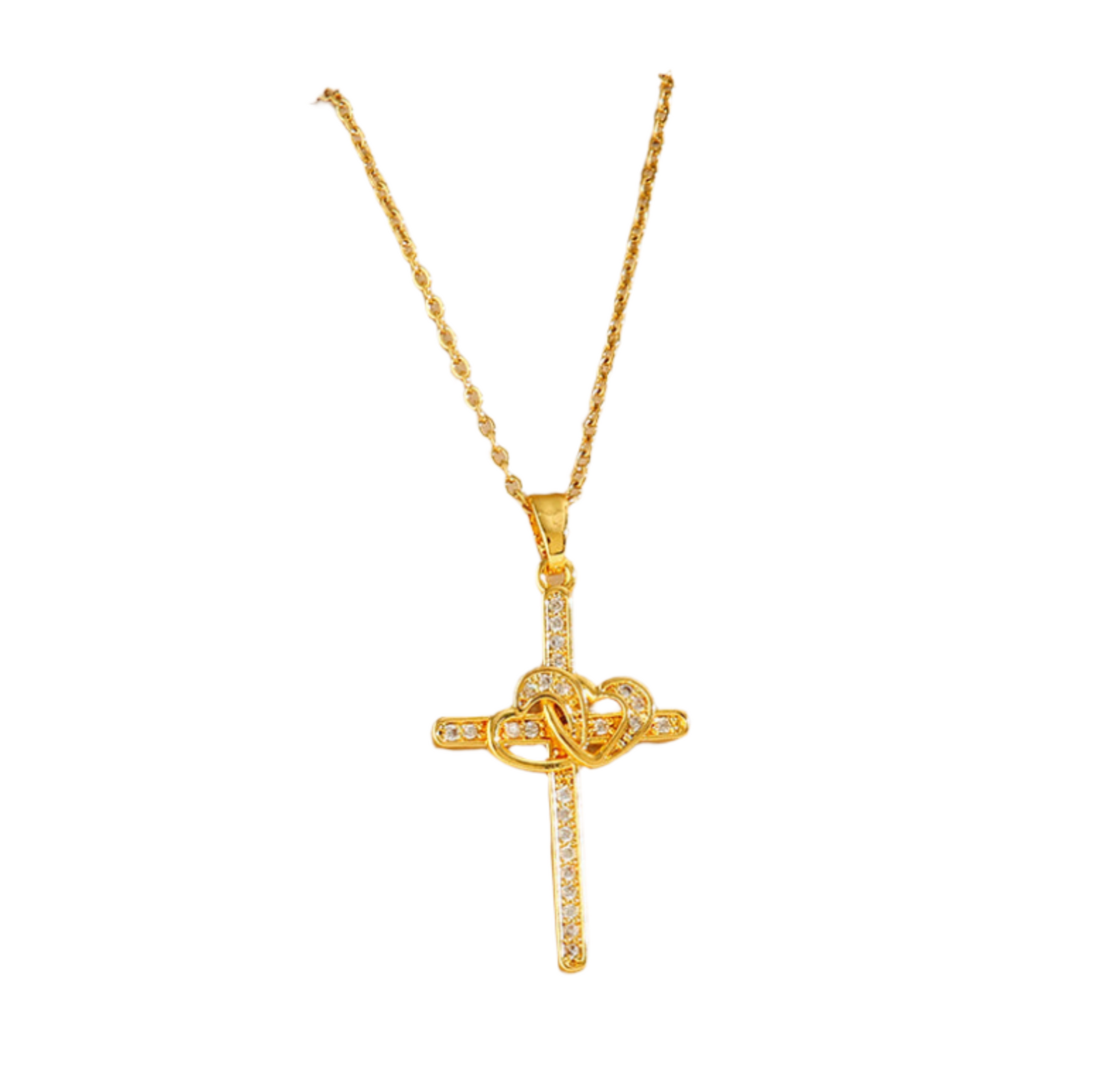 Cross Double Ring Love Heart Surrounded Zircon Pendant Necklace Valentines Day Gift