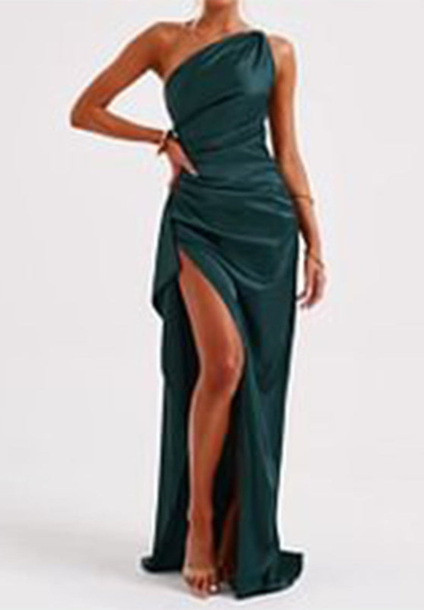 Sexy One-shoulder Backless Slit Dress Summer Elegant Slim-fit Solid Color Satin Dresses For Women
